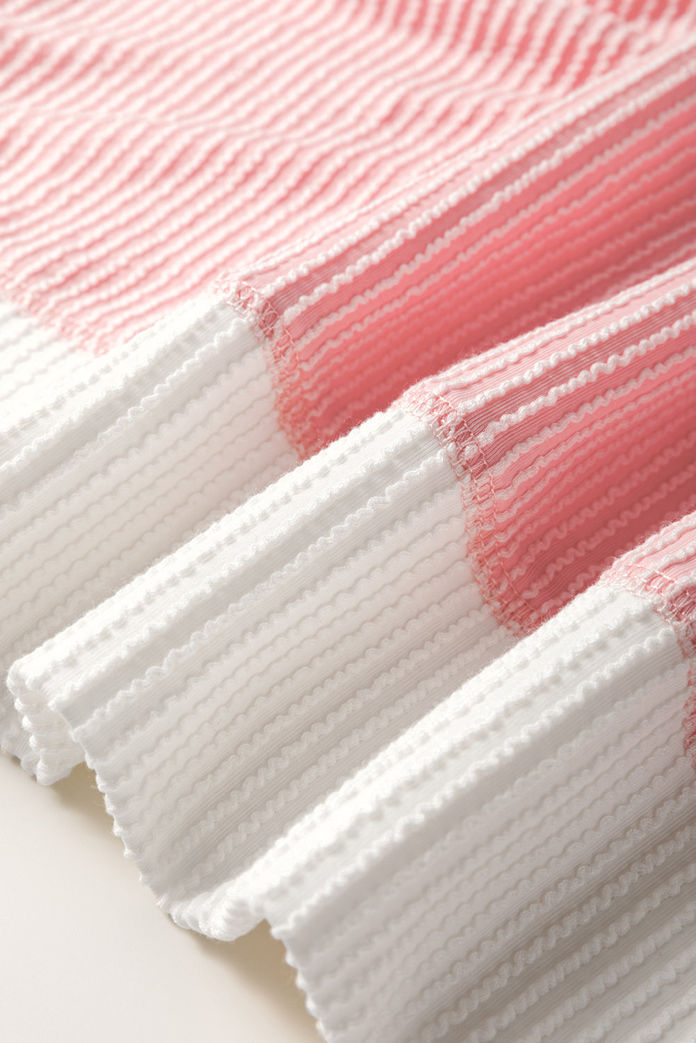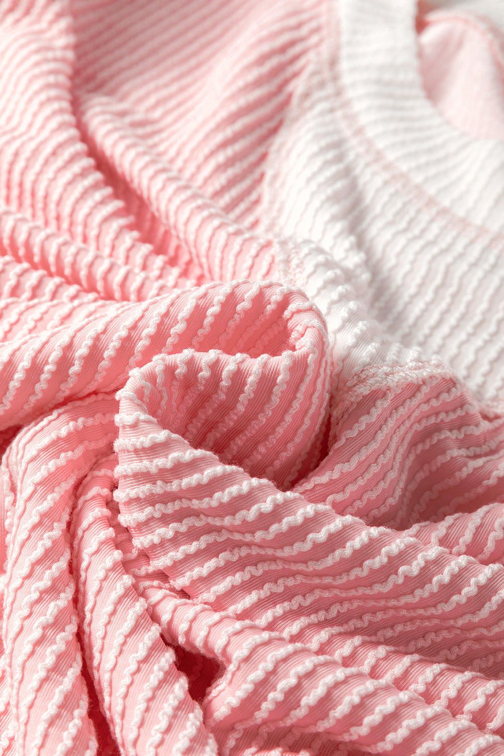 Peach Blossom Corded Colorblock Drop Shoulder Loose Top
